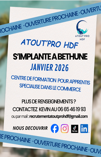 Le CFA d’Atout Pro’HDF est situé à Bailleul dans le département du Nord et à Béthune dans le département du Pas-de-Calais.