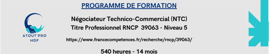 Le Titre Professionnel « Négociateur Technico-Commercial » vise à vous former au développement de l’activité commerciale d’un secteur ou d’un produit. Les objectifs sont d’acquérir les compétences nécessaires pour développer les ventes et fidéliser un portefeuille de clients sur un secteur géographique.