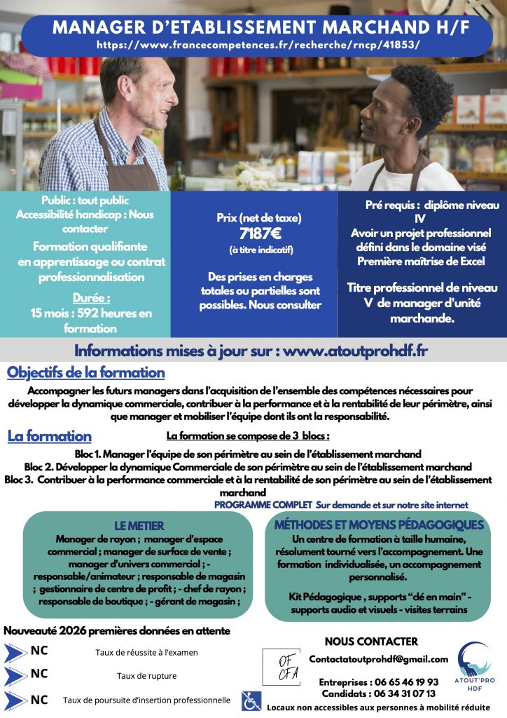 MANAGER D’ETABLISSEMENT MARCHAND H/F